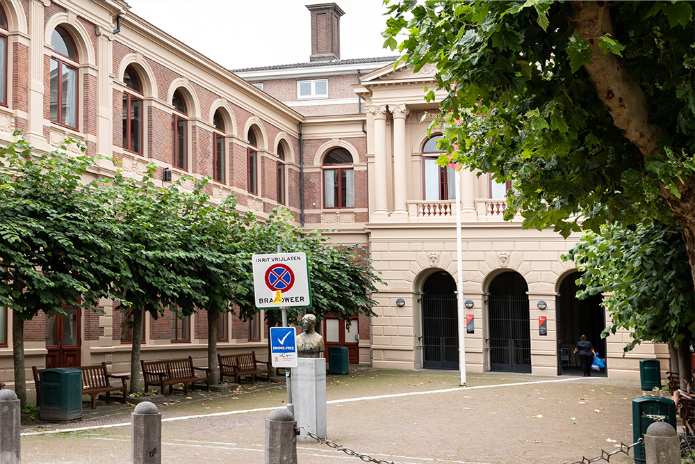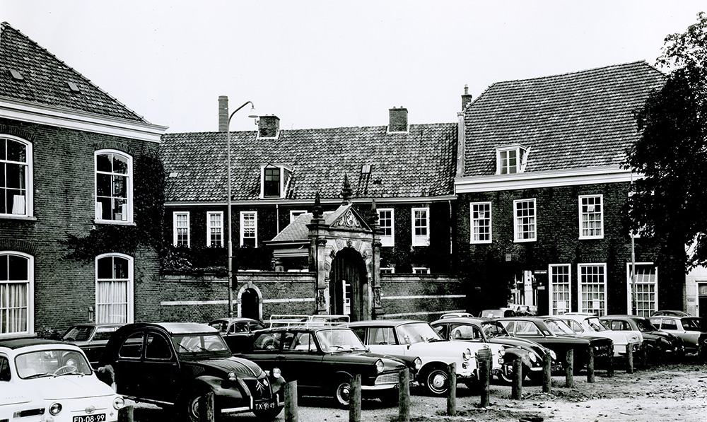 Na de renovatie van de voorgevel en de vervangende nieuwbouw van de achterliggende verbrande delen, is het voorterrein rond 1977 heringericht waarbij er geen plek meer was voor de auto. Dit sloot aan bij het gedachtengoed van het in 1977 ingevoerde Verkeerscirculatieplan, wat als doel had om de binnenstad autoluw te maken.